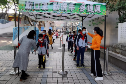 紧盯防疫培训与宣传引导。督查了解,一、二附小均在开学前开展了“规范、有序、扎实”的疫情防控演练,并制定了校园防疫指南,开展了学生线上防疫教育与测试活动。同时,一附小推出了线上防控肺炎疫情系列专题校本课程,设计与制作了校园防疫宣传教育展板,二附小制作宣传了“以毅战疫,共同成长”开学第一课,校园内随处可见疫情提醒小贴士等。