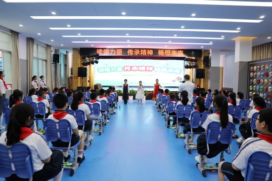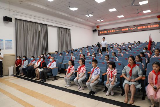 在一附小,校领导参加了“春风化雨 快乐成长”主题六一活动,看望教师及优秀少先队员,并为一年级四个新成立的中队授中队旗,校长童小娇代表学校赠送了慰问金。校党委书记彭小奇在总结讲话中代表一师党政对全体一附小的小朋友们致以节日的问候,祝愿全体一附小的小朋友们节日快乐。他分享了自己在50年前戴上红领巾时老师的寄语,也就是一附小老校长毛泽东主席说过的话,“同学们团结起来,做新中国的新主人。世界是我们的,做事要大家来”。并祝愿同学们在美丽的一师,在英雄的一附小,茁壮成长,好好学习,天天向上,成为新时代的建设者和社会主义的接班人!