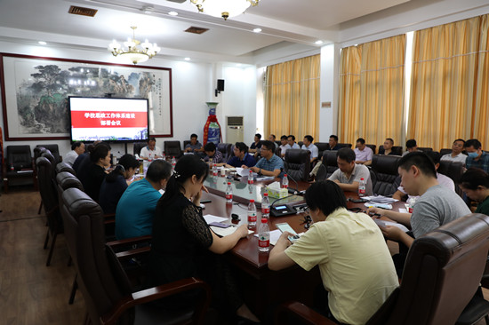 6月12日,学校在东方红校区行政楼会议室召开思政工作体系建设部署会议。校党政领导彭小奇、刘志敏、刘鸿翔、刘宇、李昱、江正云、彭晓辉、赵小群以及各二级学院党政领导参加了会议。会议由校党委副书记刘志敏主持。