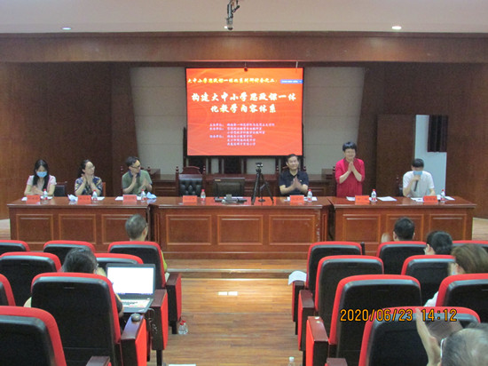 为贯彻落实习近平总书记关于加强学校思想政治理论课建设的重要指示精神,推进大中小学思政课一体化进程,2020年6月23日下午,best365官网马克思主义学院召开了线上线下相结合的“大中小学思政课一体化”专题研讨会。校党委书记彭小奇、副校长江正云,博才寄宿小学、周南雨花中学、长沙教育学院等学校的思政教学名师以及马院全体教师、思想政治教育专业毕业生参加了研讨活动。研讨会分别由马克思主义学院党总支书记欧阳斐、副院长钟佩君、专业教研室吴承富老师主持。