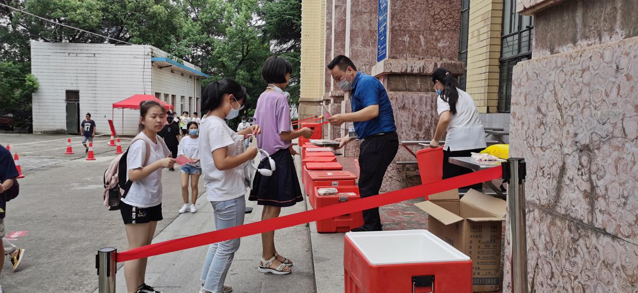 为了保障在疫情期间对口招生考试安全、平稳进行,校党政领导、各级部门高度重视,多次召开专题会议进行部署研讨。城南书院多次召开辅导员专题会议、职高对口考试动员大会、学生考前动员及考试事项培训,确保了城南书院考生分时段、分考场依次进场。校党委书记彭小奇、校长童小娇、党委副书记刘志敏、副校长刘宇、纪委书记李昱、副校长江正云以及各职能部门负责人分别到场巡查确保考试顺利进行。考试期间,为了让考生能够补充丰富的营养,同时确保疫情期间学生用餐安全,学校后勤处会同湖南中果餐饮有限公司,采用盒装套餐、荤素搭配的形式,为全体学生免费提供考试期间的中餐、晚餐,并为学生准备了免费的凉茶,让学生在炎炎夏日和紧张的考试氛围中真切地感受到了学校的温情。