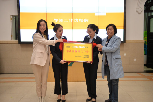 随后,吴亚西和陈敏华为工作坊揭牌。首席导师曾晓洁发表讲话。她表示将带领工作坊全体成员力争在小学语文教育教研等方面起到示范、引领效应,取得丰硕的教育教学成果,从而辐射更多的教师及学生。