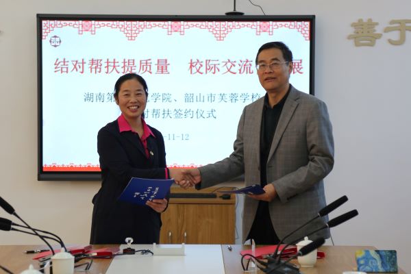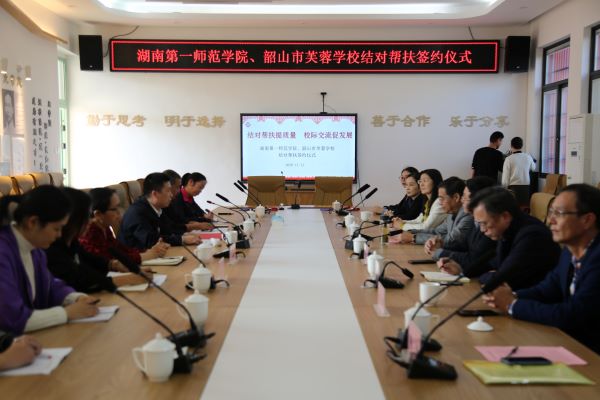 为了进一步加强校际交流,真正实现“资源共享、优势互补、共同提高” 的帮扶目标,促进韶山市芙蓉学校教师成长,11月12日,best365手机版官方网站、韶山市芙蓉学校结对帮扶签约仪式在韶山市芙蓉学校举行。韶山市市委常委、市委宣传部部长李先金,韶山市政协副主席、韶山市教育局副局长庞石林、best365官网党委委员、副校长江正云,教务处处长蒋蓉、基础教育发展部主任欧立新出席仪式。仪式由庞石林主持。