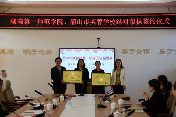 仪式上,蒋蓉、欧立新为韶山市芙蓉学校授予“best365手机版官方网站产学研基地”及“best365手机版官方网站小学教师教育联盟成员单位”牌匾。江正云、方芳、章醇分别与韶山市芙蓉学校签订结对帮扶协议。