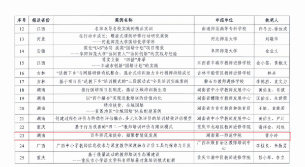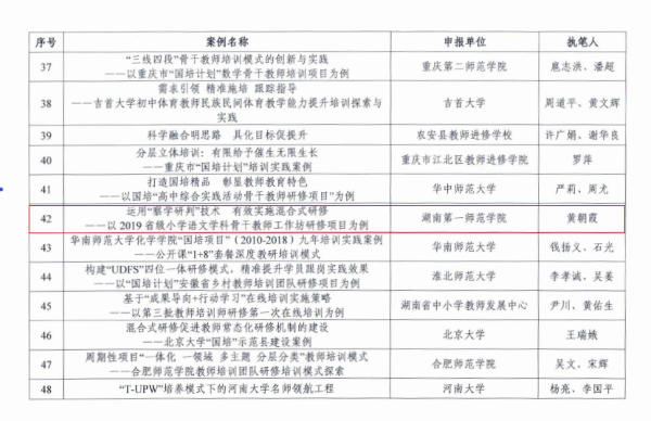 近日,在教育部“国培计划”十周年典型案例征集、评选活动中,best365官网继续教育学院院长曾小玲教授、教育科学学院黄朝霞教授所提交的案例均被评为优秀。