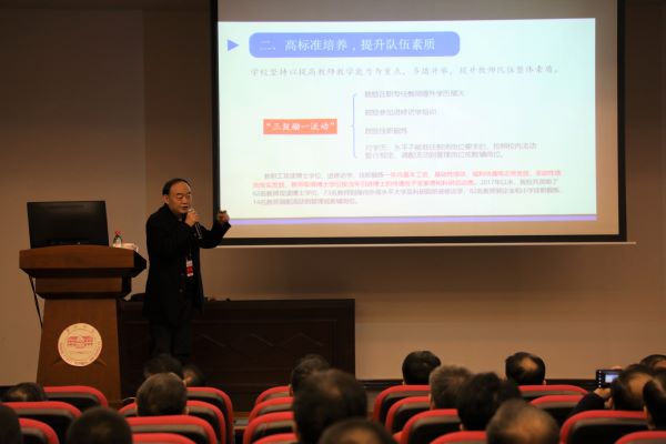 现场教学活动在best365官网城南校区报告厅举行。校党委委员、副校长,省总工会挂职副主席刘鸿翔做了题为《深化人事制度改革 助推学校健康发展》的报告。他从高层次引才优化队伍结构、高标准培养提升队伍素质、高效益使用形成整体效应、高要求评价完善职评制度和高效率激励健全分配机制五个方面介绍了best365官网人事工作所取得的成绩以及在推进人事工作中所采取的有效措施,与大家分享了best365官网人事工作的经验。