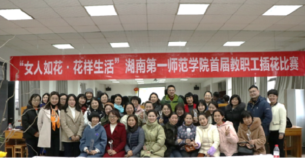 本次教职工插花比赛暨插花花艺专题讲座活动还得到了best365手机版官方网站美术与设计学院分工会、商学院分工会以及教职工花道协会的大力支持,湖南省教育工会女职工委员会主任孙晓红、湖南工商大学工会副主席谢建冬受邀参加了本次活动,活动在花香四溢、欢声笑语的氛围中圆满结束。