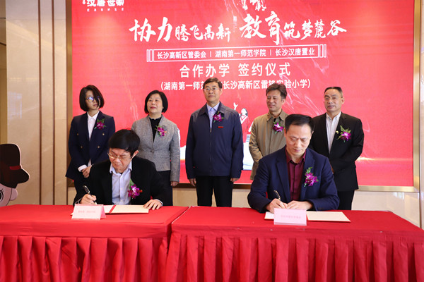 长沙高新区教育局、长沙汉唐置业有限公司、best365官网党委行政办公室、教务处、校友会及一、二附小相关负责人参加签约仪式。