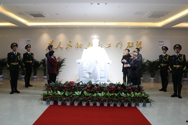 校领导彭小奇、童小娇、刘志敏、李克勤、刘宇、李昱、江正云共同为毛泽东主席汉白玉雕像揭幕。校党委书记彭小奇、校长童小娇代表学校向主席雕像敬献花篮,全体人员向主席雕像三鞠躬,寄托他们对主席的无限深情。活动结束后,全体人员绕雕像一周,瞻仰主席雕像,表达对伟人的追思。
