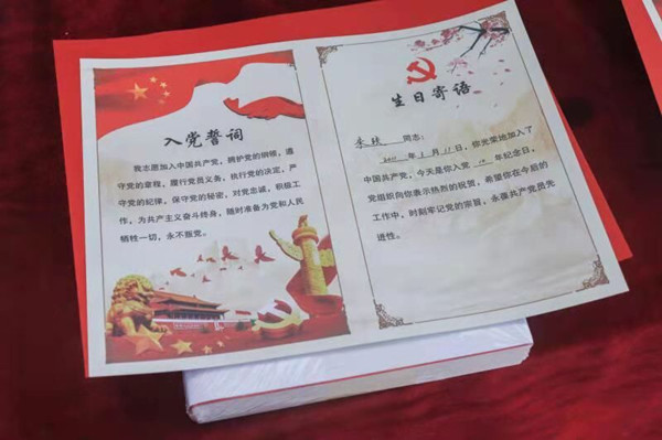 “在建党100周年之际收到党组织送来的‘政治生日贺卡’,意义非凡、刻骨铭心。通过集体过政治生日,真切地感受到了组织的温暖,感受到有一种无形的力量在激励、鞭策自己,今后将继续把初心和使命化作干好工作的信心和决心!”青年教师党员代表激动地说道。