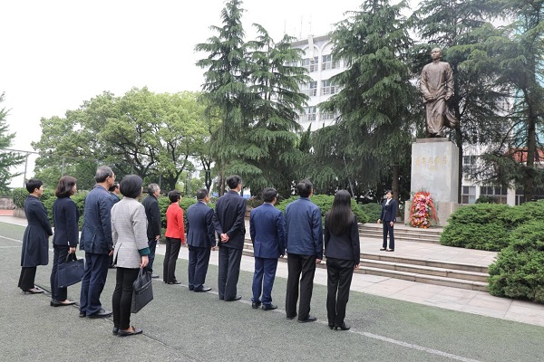 4月23日上午,校党委理论学习中心组围绕“学史增信”主题开展党史学习教育专题学习现场教学。校领导罗成翼、童小娇、李克勤、曹兴、周发明、李昱、江正云、彭晓辉、蒋蓉、赵小群参观了湖南省立第一师范学校旧址,接受初心洗礼,为全校各级党组织和师生员工作出示范,推进全校党史学习教育深入开展。党政办、纪念馆、城南书院负责人陪同参加。