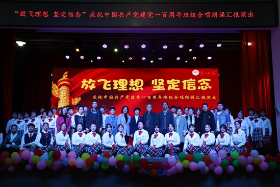 4月29日晚上,城南书院“放飞理想·坚定信念”庆祝建党一百周年合唱朗诵汇演,在城南书院校区大礼堂举行,校长童小娇、副校长曹兴出席了汇演活动。