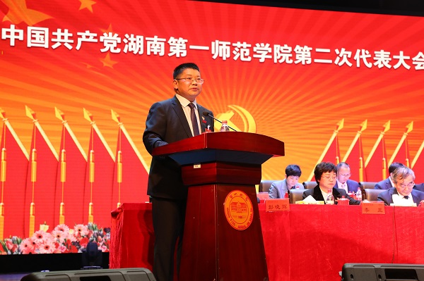 罗成翼指出,过去五年,学校党委坚持社会主义办学方向,全面贯彻党的教育方针,团结带领全校师生员工围绕学校事业发展目标,励精图治,砥砺奋进,高质量完成第一次党代会提出的各项任务,整体办学实力和社会声誉迈上新台阶。学校政治建设首位推进,思想工作引领有力,组织建设得以加强,党风廉政建设取得实效,人才培养取得新成效,师资队伍呈现新面貌,学科建设和科研工作取得新成果,服务社会作出新贡献,交流合作打开新局面,办学条件持续改善,师生幸福指数不断提高,列入了湖南省硕士学位授予建设单位、湖南省本科第一批招生高校、通过教育部本科教学工作审核评估,取得了显著成绩。