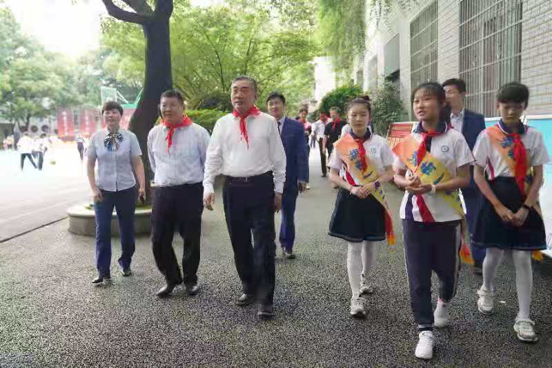 步入校园,少先队员们给蒋伯伯一行献上了鲜艳的红领巾。蒋昌忠厅长一行在学校领导陪同下参观了校园,听取了学校办学理念、师生发展、教育教学等情况汇报,对学校办学成效给予了充分肯定。