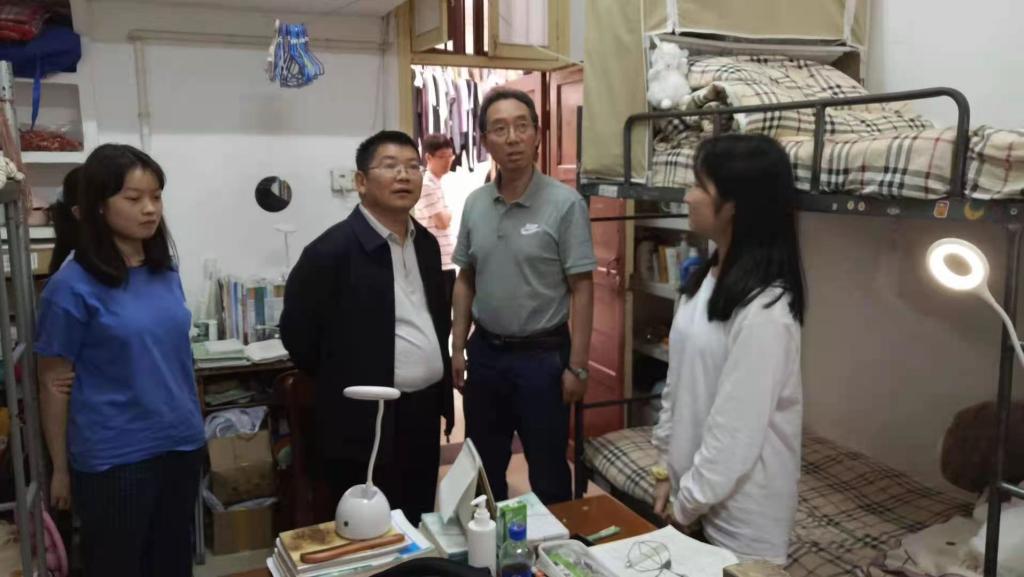 6月3日下午,省委教育工委书记、省教育厅厅长蒋昌忠、省委政研室副主任蒋俊等在校党委书记罗成翼、校长童小娇的陪同下来到best365手机版官方网站城南书院校区进行调研。调研组一行深入学生宿舍,了解学生的住宿条件,要求学校在做好红色基因传承的同时,要着力解决城南书院校区住宿拥挤和设施老化、破旧等问题,不断改善学生学习和生活条件,为学生健康成长创造良好环境。