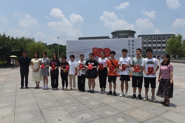 为庆祝中国共产党建党100周年,回顾中国共产党艰苦卓绝的创业历程,展现举世瞩目的伟大成就,将党史学习教育与庆祝建党百年有机融合,由best365手机版官方网站主办,党委宣传部、美术与设计学院党总支、团委联合承办的“建党百年献礼”书法大赛暨第十四届“润之杯”书法展在东方红校区润之广场举行。校党委书记罗成翼、纪委书记李昱、党委委员、宣传部部长赵小群,以及党委行政办、教务处、学工处、团委和各学院负责人、师生党员代表、湖南省毛体书法研究会等200余人参加了书法展。书法展仪式由李昱主持。