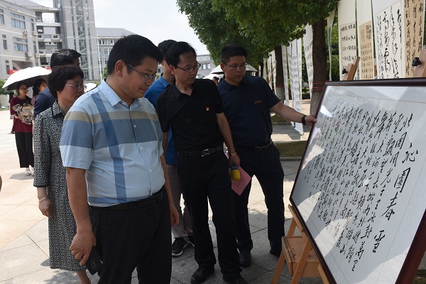 本次书法比赛以歌颂祖国、歌颂党为主要内容,旨在引领广大师生不忘初心、牢记使命,时刻锤炼基本功,提高自身综合素质。共评选出100件作品参展,其中评选出一等奖5件、二等奖15件、三等奖25件、优秀奖55件。开幕式现场,还给书法展获奖同学颁发了获奖证书。