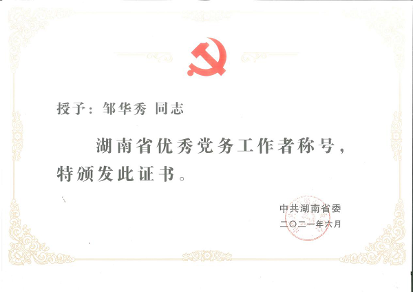根据《中共湖南省委关于表彰湖南省优秀共产党员、湖南省优秀党务工作者和湖南省先进基层党组织的决定》,196名同志被授予“湖南省优秀共产党员”称号、4名同志被追授“湖南省优秀共产党员”称号,200名同志被授予“湖南省优秀党务工作者”称号,199个基层党组织被授予“湖南省先进基层党组织”称号。best365官网城南书院党总支书记邹华秀同志荣获“湖南省优秀党务工作者”称号。