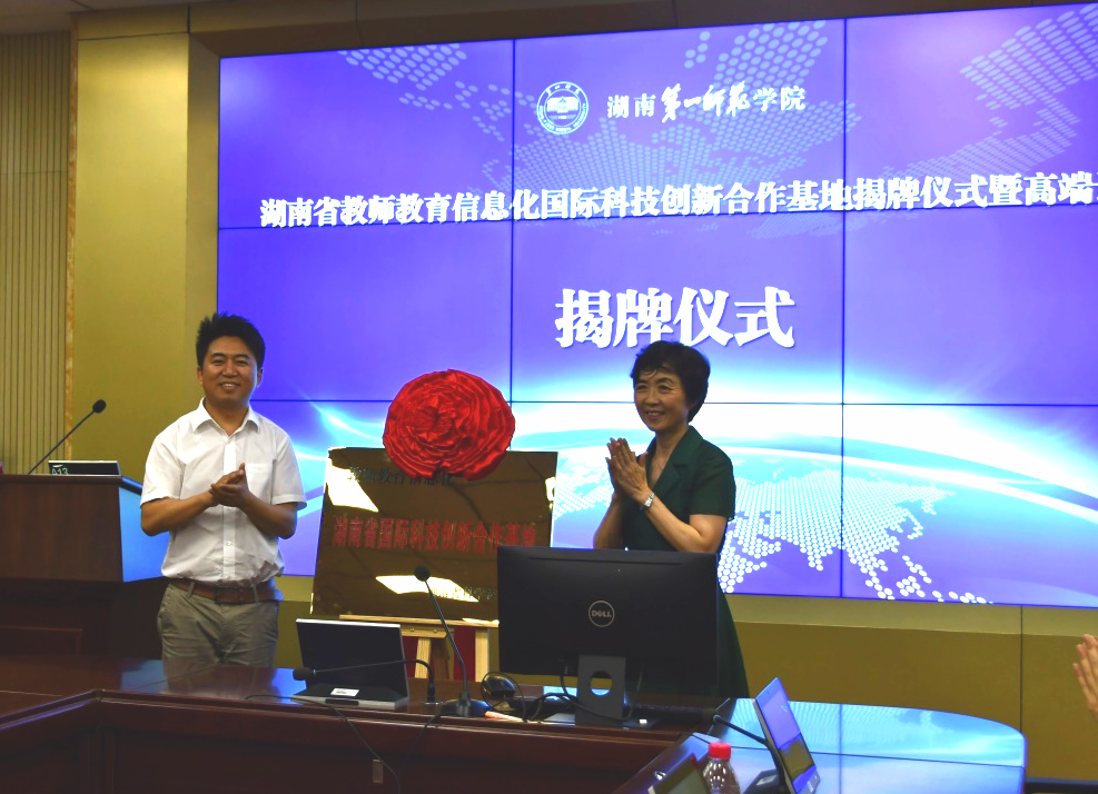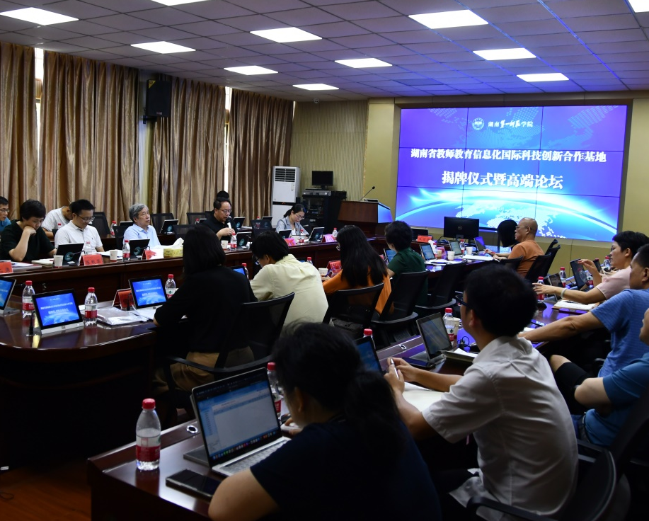 7月10日,湖南省教师教育信息化国际科技创新合作基地揭牌仪式暨高端论坛在best365官网东方红校区隆重举行。会议特邀了省科技厅国际合作与交流处副处长黄进、省教育厅发展规划处副处长甘文波莅临指导,北京师范大学陈光巨教授、湖南师范大学刘铁芳教授、北京师范大学薛二勇教授、湖北大学靖国平教授、扬州大学陈秋苹教授、中国教育科学研究院易凌云教授、华中师范大学王坤庆教授七位专家进行了主题发言。校长童小娇,教育科学学院、学科建设与科研管理处、现代教育技术与网络中心、党委行政办公室、国际合作与交流处等相关部门负责人、教师代表参加了会议。会议由副校长蒋蓉主持。