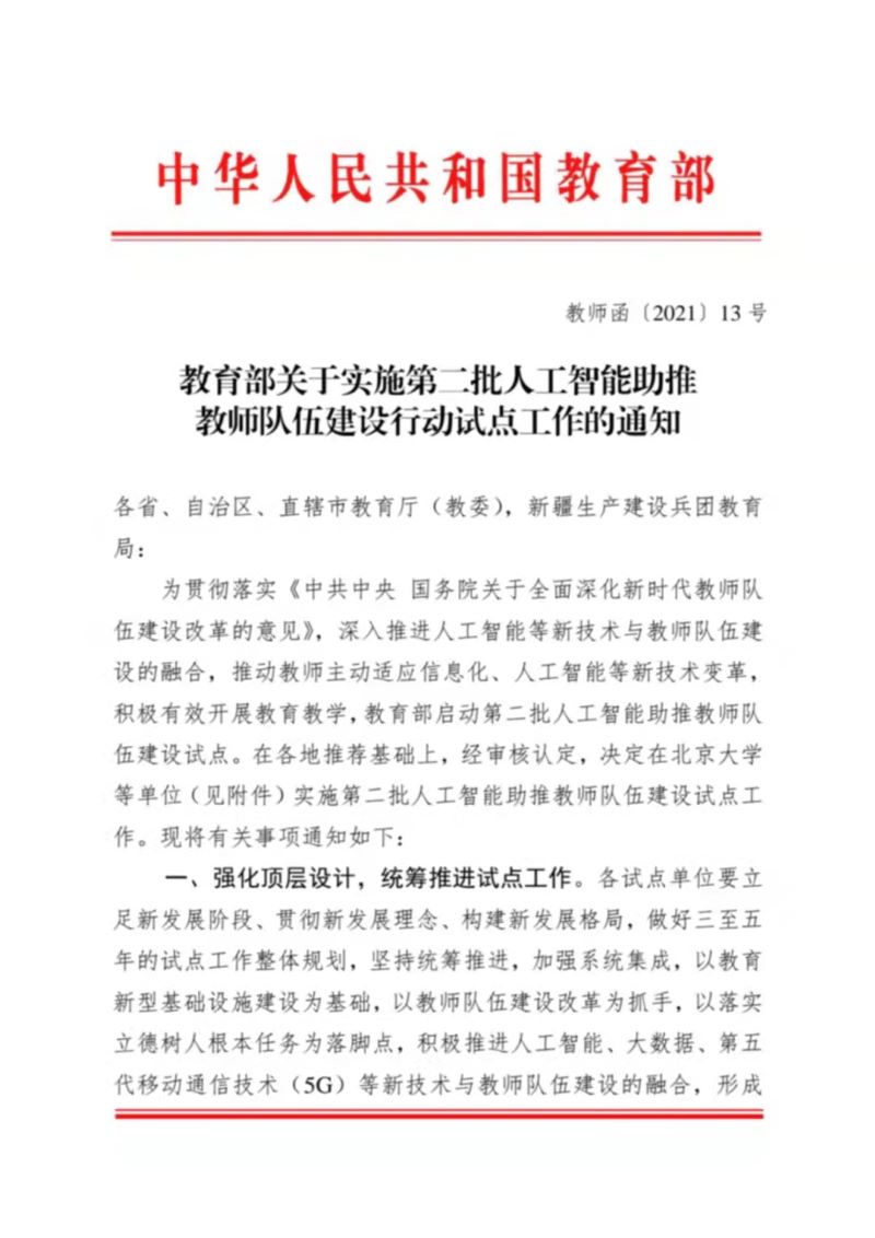 近日,教育部公布了第二批人工智能助推教师队伍建设试点单位名单,经单位申报、逐级推荐和专家评审,best365官网成功获批“教育部第二批人工智能助推教师队伍建设试点单位”。