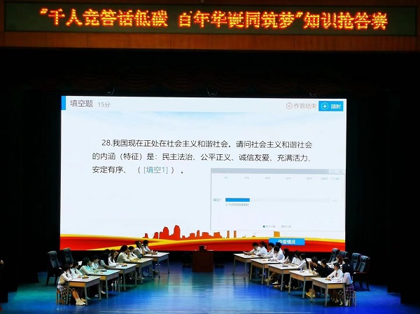 “千人竞答话低碳 百年华诞同筑梦”抢答赛气氛热烈,10支参赛队在台上激烈角逐,近千人线上同时竞技,争抢科普答题桂冠。“趣味科普DIY”课堂上,学生们在老师的指导下亲手制作出一件件精致的科普教具,进一步加深了对科学知识和原理的理解。