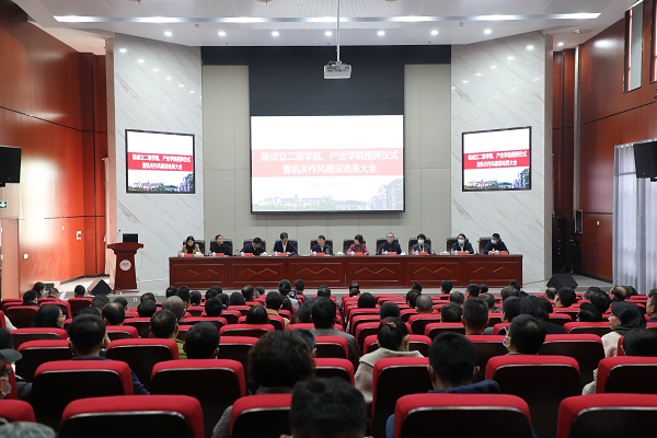 11月17日下午,best365官网在东方红校区双创楼报告厅召开新成立二级学院、产业学院授牌暨机关作风建设动员大会。全体校领导、职能部门副科级以上干部、二级学院副处级以上干部参加了会议。会议由校党委副书记李克勤主持。