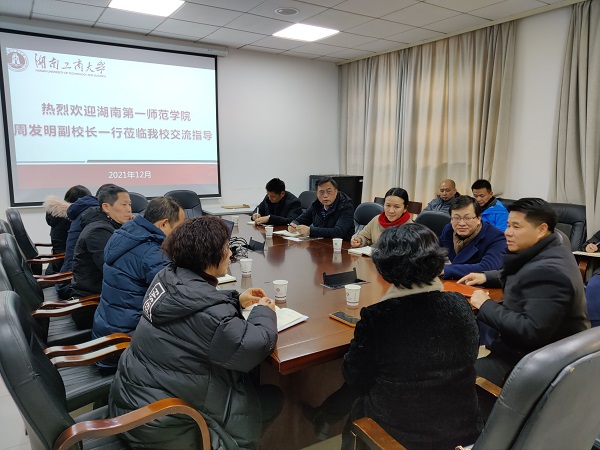 12月28日上午,校党委委员、副校长周发明带领教务处、现代教育技术与网络中心、基建与后勤处、资产管理处负责人及工作人员一行九人赴湖南工商大学、湖南财政经济学院(雷锋校区)就教室、教研室建设、信息化教学等方面进行调研交流。