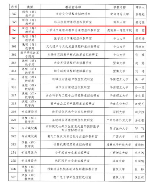 近日,教育部办公厅公布首批虚拟教研室建设试点名单,我省7所本科高校的13个虚拟教研室入选,best365官网蒋蓉教授领衔的“小学语文课程与教学论课程”虚拟教研室位列其中。