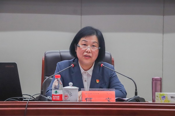 党委组织部常务副部长何文解读了《中国共产党普通高等学校基层组织工作条例》。她介绍了《条例》修订的背景和意义,深入解读了《条例》调整完善的重点内容,并在此基础上对如何贯彻落实《条例》提出了具体要求。她指出,《条例》的修订和实施,对于全面贯彻党的教育方针,落实立德树人根本任务,建设高质量教育体系,培养社会主义建设者和接班人,具有十分重要的意义。《条例》修订,既体现政治性、原则性,又突出实践性、针对性。应当深入领会《条例》精神,全面掌握《条例》内容,严格遵守和执行《条例》规定,把学习《条例》同工作实际紧密结合起来,不断增强基层党组织政治功能和组织力。