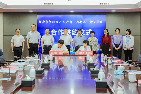best365官网党政办、现代教育发展学院/教师培训学院负责人和望城区有关部门领导见证签约。