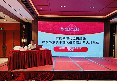 罗成翼指出,第二次党代会以来,学校党委坚决贯彻新时代组织路线,构建坚强有力的组织体系,锻造忠诚干净担当的高素质干部队伍,集聚爱国奉献的优秀人才,为学校以高质量党建推动高质量发展提供了坚强组织保障,形成了领导班子引领能力增强、改革发展速度加快、干部干事创业氛围浓厚、政治生态积极向好的生动局面。校领导班子解放思想,勇于改革,关心民生,积极主动回应师生关切,赢得了广大干部群众的高度认可,在省委组织部对班子的测评中,总体评价优秀率为95%,优秀率大幅提升,创近年纪录。他强调,要进一步推进新时代组织路线在一师走深走实,进一步建强领导班子、领强干部队伍、夯实基层基础、推进人才强校,营造风清气正的政治生态,为“一四”战略提供坚强组织保障和人才支撑!