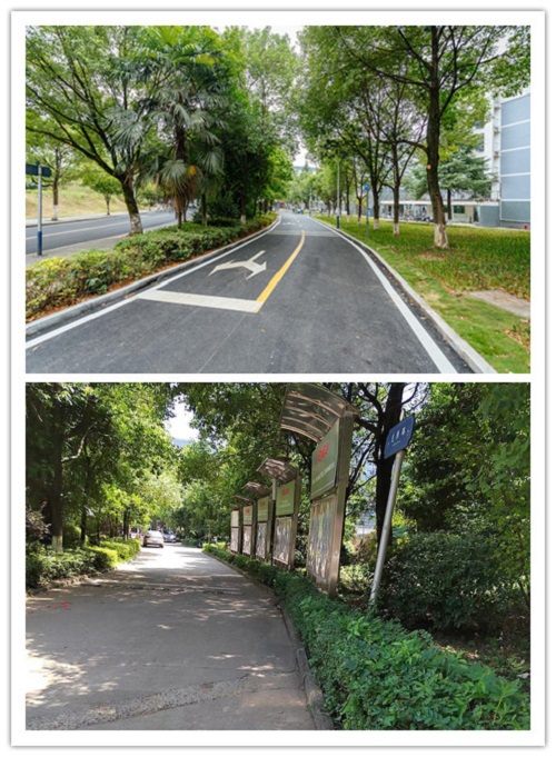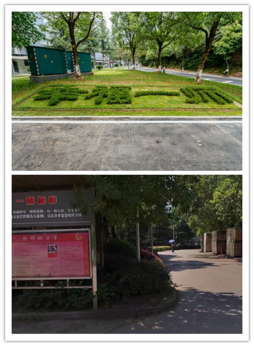 金秋酷暑,开学季如期而至,广大师生员工如期返校,我们的校园环境升级大改造也如期完成。整饬一新的校园在暑期返校归来的广大师生员工眼中更显怡人,倍感亲切。从学校北大门入校,以逆时针方向沿着绿树环荫、路面敞亮、标线分明的环线一路周行,只见敬夫路、弼时路交汇口的网球场、篮球场和旁边的停车坪已升级为塑胶地;弼时路两边的水果街铺和国基广场西边临靠学生公寓的便利平房,都华丽蝉蜕为绿植相伴的人行便道;学生公寓1-14栋周边荒杂空地则升级改造为草皮、草地、绿植交错而美的绿化带;五口塘东边依山而建的木屋小院和车队平房,也因失修破败存在安全隐患而改造为小巧便利的停车位。从中轴广场拱门开始,穿行自成院落而混融一体的各教学楼栋馆所,在熟悉亲切之中不时发现新的变化:所有教室都布设了空调线路并将陆续安装空调,图书馆新建了智慧书屋而书香满屋,美术与设计学院展览室和报告厅都改造、装饰一新……
