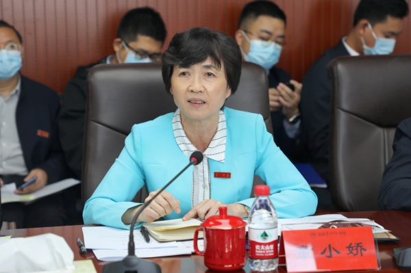 10月21日上午,湖南湘江新区(长沙高新区)党工委副书记、管委会主任,岳麓区委副书记、区长何朝晖,湘江新区(长沙高新区)党工委副书记、岳麓区委副书记周凡,湘江新区(长沙高新区)党工委委员、管委会副主任郭力夫等一行来best365官网考察交流。校党委书记罗成翼,校长童小娇,副校长曹兴、周发明、彭晓辉、蒋蓉出席座谈会。座谈会在百熙楼713举行,童小娇主持。