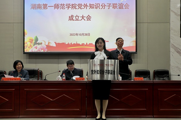 刘丽群宣布了best365手机版官方网站党外知识分子联谊会第一届理事会第一次会议选举结果,张娴担任会长,彭善琼、荆龙姣担任副会长,颜雅琴任秘书长。李克勤为best365手机版官方网站党外知识分子联谊会授牌。
