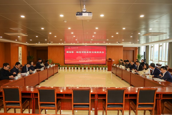 罗成翼指出,杭州师大“立足杭州,服务杭州”,通过调整院系设置、拓展学科布局、优化专业结构,把学校发展与地方经济社会发展紧密联系在一起,把一所地方性高校办成了一流综合性大学,走出了一条以大转型促快发展的非凡之路,值得一师学习借鉴。我们要解放思想,改革创新,因势而动、顺势而为、乘势而上,积极拓展学科专业,主动服务社会发展,既要坚守基础教育主阵地,又要抢占智造长沙新阵地,开辟新赛道,形成新优势,办好新师范。希望双方以“天下师范是一家”的情感和推动师范院校创新发展的共识为纽带,深化交流合作,共同谱写以地方师范院校高质量发展服务地方经济社会高质量发展的新篇章。郭东风表示,湖南一师与杭州师大有很深的渊源,也面临同样的挑战。湖南一师坚守育人初心,大力推进改革,在人才培养、干部人事制度改革等方面取得良好成效,对于杭州师大提升内部治理体系和治理能力现代化水平、争创一流具有很好的借鉴作用。希望双方以此次考察交流为契机,在人才培养、学科建设、内部治理、服务地方等开展深入交流,携手同行,共谋发展。