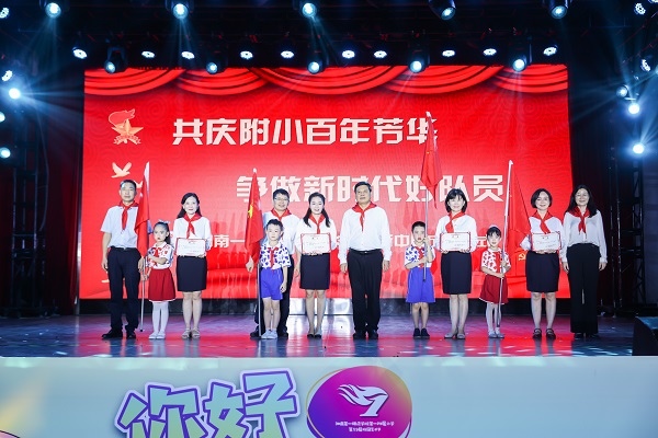 在少先队员的邀请下,省教育厅领导和校领导一行走进老校区大礼堂,出席了一附小正在举行的“你好!百年附小”庆“六一”文艺汇演。