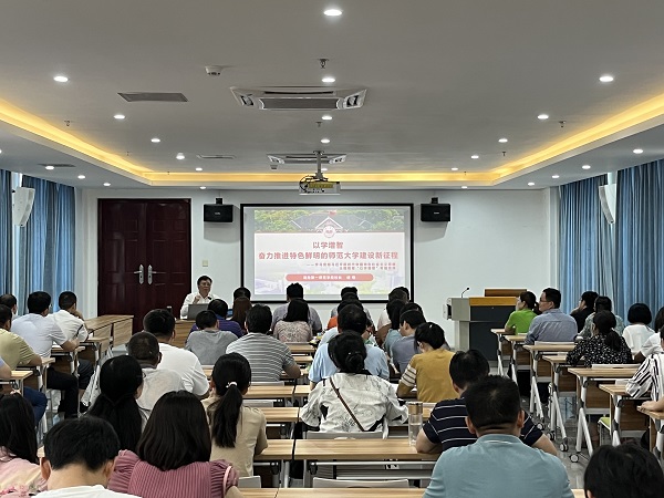 6月1日,校党委副书记、校长胡穗以《以学增智,奋力推进特色鲜明的师范大学建设新征程》为题,为数学与统计学院、电子信息学院、审计处、国际交流与港澳台事务处等单位的教职工讲授主题教育专题党课。