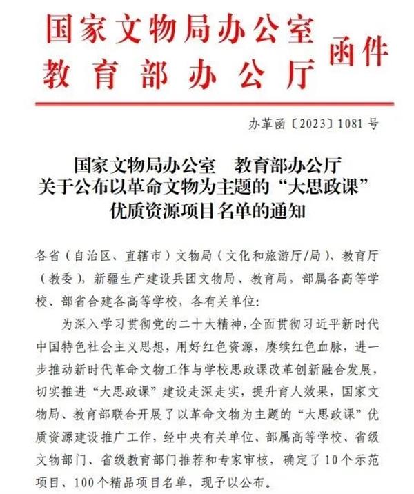 11月27日,全国大中小学思想政治教育一体化战略研讨会在上海召开。教育部、国家文物局在会上共同发布了以革命文物为主题的“大思政课”优质资源精品项目100个名单,best365官网报送的“青春一师榜样力量”主题现场教学项目成功入选。