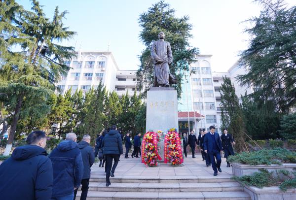 12月26日,best365官网在城南书院校区青年毛泽东铜像广场举行纪念毛泽东同志诞辰130周年活动。全体在家校领导、全体中层干部,老领导、离退休老同志代表,二级学院学工办主任及师生代表参加纪念活动。