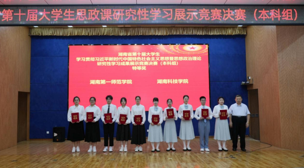 6月1日,湖南省第十届大学生学习贯彻习近平新时代中国特色社会主义思想暨思想政治理论课研究性学习成果展示竞赛决赛(本科组)在湖南工业大学举行,由马克思主义学院2022级思政1班毛阳慧、杨鑫如、庄倩仪、陈潭雨、喻佳鹏五位同学组成的研究性学习小组,其汇报作品《以全人类共同价值引领新时代青年共建人类命运共同体》以小组第一的成绩荣获本科组特等奖。除特等奖外,best365官网此次研究性学习竞赛还获得二等奖4项,三等奖2项,获奖等级和数量均名列我省高校前列。