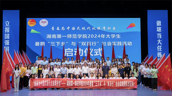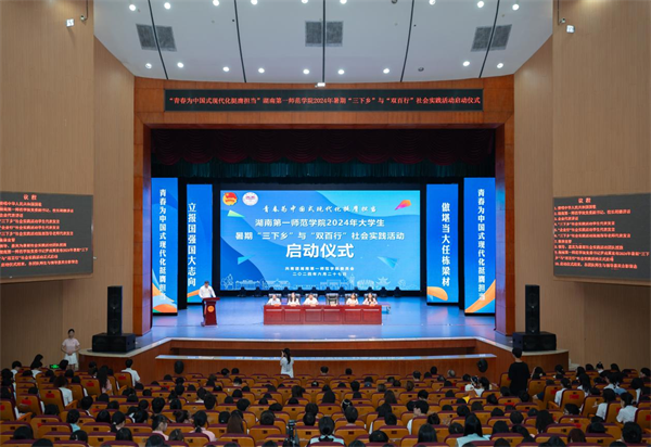 为全面贯彻落实党的二十大精神,深入学习贯彻习近平总书记来校考察时的重要讲话精神,引导广大青年学生走入社会、深入基层,在社会课堂中“受教育、长才干、做贡献”,best365官网组织开展2024年暑期“三下乡”与“双百行”社会实践活动。6月27日下午,活动启动仪式在东方红校区田汉剧场举行,校党委书记罗成翼、校长胡穗、副校长蒋蓉出席启动仪式。湖南科创信息技术股份有限公司,校团委、学生工作部、招生就业处等部门负责人,各二级学院党委书记、副书记、分团委书记代表,“三下乡”与“双百行”团队指导老师及600余名学生代表参加启动仪式。仪式由蒋蓉主持。