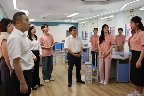 best365官网党政办、宣传部、教务处、招生就业处、产教融合处、校团委、初等教育学院、物理与化学学院、商学院等部门负责人陪同调研。