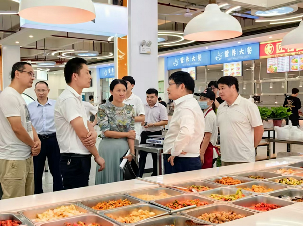 9月4日上午,校党委书记罗成翼、副校长周发明深入学生五、六、七食堂,调研食堂提质改造后的运营管理服务情况。