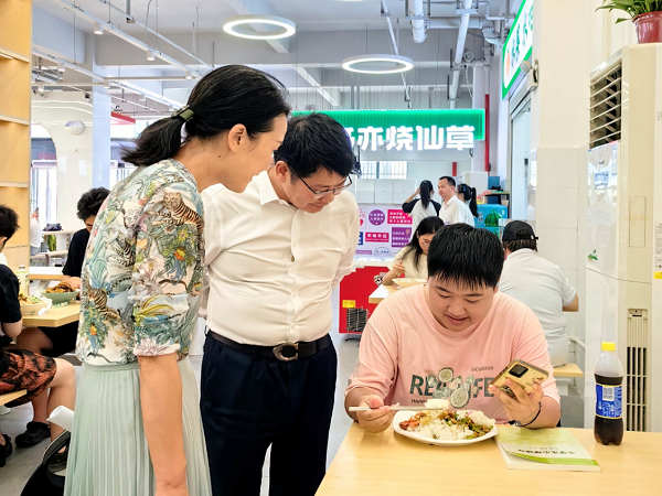 罗成翼一行认真听取了食堂工作汇报,并仔细查看档口功能布局、食品卫生、菜品菜价、营养搭配等情况。 “一餐饭花多少钱?”“味道怎么样?”……罗成翼不时与就餐学生亲切交谈,详细询问学生的用餐体验、消费体验及对用餐服务的建议。