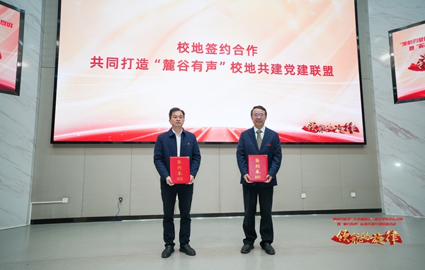 现场进行了校地共建党建联盟签约仪式和青年宣讲队授旗仪式。best365官网与湘江新区麓谷街道签约,共同打造党建联盟共建社区党建品牌“麓谷有声”;唐曙光为校地共建的服务基层青年宣讲队授旗。