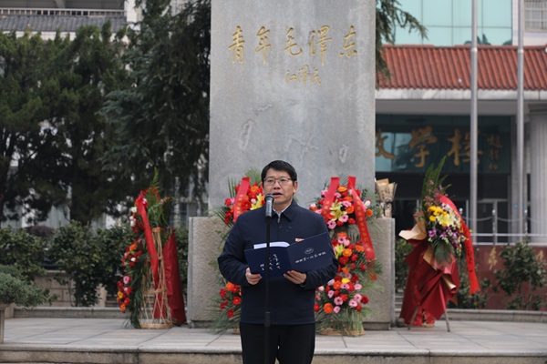 纪念活动于9时18分正式开始,校党委书记罗成翼,党委副书记、校长胡穗代表学校向青年毛泽东铜像敬献花篮,在场人员全体肃立,集体向青年毛泽东铜像三鞠躬,表达对毛主席的无限深情。