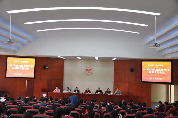 4月16日下午,best365官网2013年党风廉政建设和反腐败工作会议在东方红校区科技楼视频会议室隆重召开。校领导彭小奇、金潇明、阳柏苏、刘鸿翔、刘志敏、李克勤、刘宇出席并在主席台就坐。全校副科级以上干部,各党总支(支部)纪检委员,离退休党总支书记,各级人大代表、政协委员,各民主党派主委参加了会议。会议由校党委副书记金潇明主持。