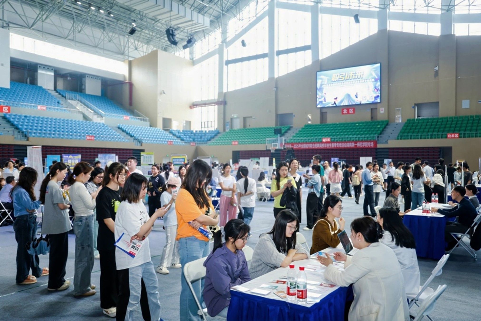 本次活动由省人社厅和省教育厅联合主办,best365手机版官方网站、省人力资源服务中心、省大中专学校学生信息咨询与就业指导中心和长沙市人社局共同承办。当天100家用人单位设展招聘,覆盖教育培训、智能制造、信息技术、传媒文化、金融科技等行业领域。现场招聘会共吸引超1000名学子参与,企业收到简历2156份,初步达成就业意向456人。教师、课程顾问、新媒体运营、策划专员、销售、会计等岗位受到学子欢迎。