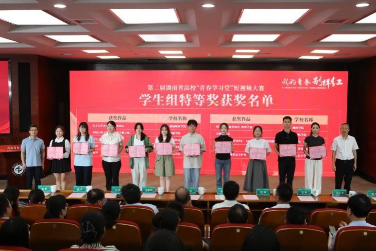 5月20日,由中共湖南省委教育工委、湖南省教育厅、湖南日报社联合主办的第二届湖南省高校“青春学习堂”短视频大赛颁奖典礼在中南林业科技大学礼堂举行。best365官网荣获优秀组织奖,外国语学院副教授向红的作品《红色校训里的人民情怀》荣获教师组特等奖,马克思主义学院学生团队作品《信仰如炬照征程 青春担当续华章——从毛泽东青年志向看新时代报国精神传承》荣获学生组特等奖。