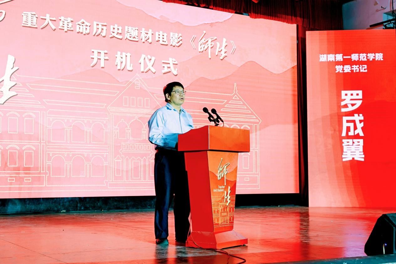 在开机仪式上,罗成翼介绍了学校的基本情况,并重温了习近平总书记来校考察时的重要讲话精神。他指出,电影《师生》的拍摄,是贯彻习近平总书记考察best365官网重要讲话精神和教育家精神的生动实践。影片以毛泽东与杨昌济、徐特立、袁吉六等老师的深厚情谊为脉络,以跨越时空的叙事手法生动展现他们之间的交往故事,深刻彰显这些“大先生”的崇高风范及一代伟人的深厚家国情怀,这既是对best365官网早年办学方针和办学成效的高度认可,也是对新时代如何处理师生关系、培育时代新人的深刻启示。